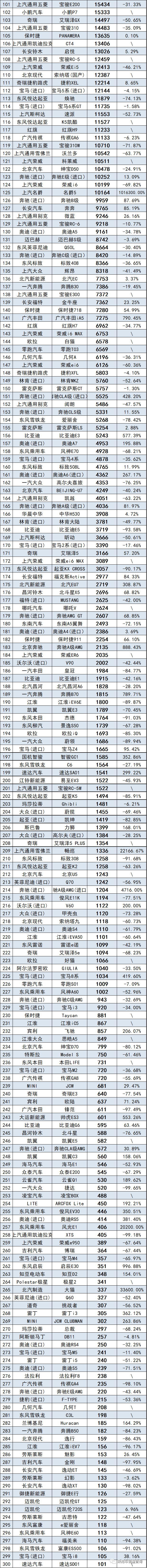 2020年度汽車銷量排行榜,超1203個車型~